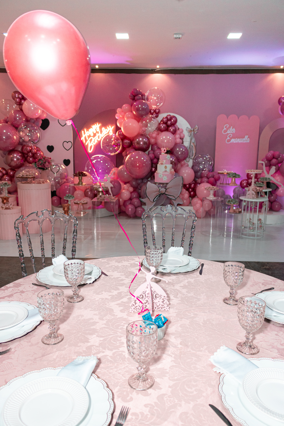 O aniversário de 10 anos da Ester Emanuella foi um verdadeiro sonho inspirado no mundo das bailarinas! Com uma decoração delicada e cheia de encanto, a festa celebrou a elegância e a paixão da aniversariante pela dança. Cada detalhe, desde as flores até o bolo temático, trouxe o charme dos palcos de balé, criando uma atmosfera mágica para a festa. A alegria da Ester e de seus convidados está registrada em cada foto, repleta de momentos graciosos e sorrisos encantadores. Este álbum é uma linda recordação de um dia especial, marcado por muita dança, amizade e celebração dos 10 anos da Ester.